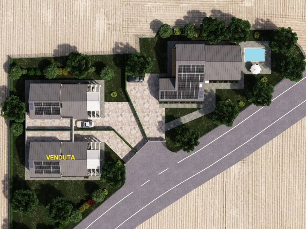 Ogni villa avrà un proprio accesso carrabile e pedonale direttamente dalla viabilità esterna, appositamente progettata per minimizzare l'impatto visivo e acustico.