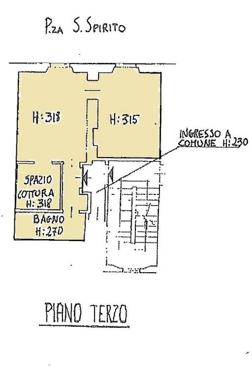 l'immobile è BILOCALE con affacci unici sulla piazza Santo Spirito e sulla Basilica.