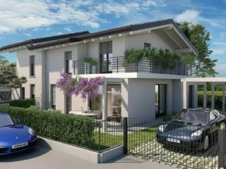 AGM Immobiliare propone in vendita una splendida villa bifamiliare di nuova costruzione con ingresso indipendente e giardino privato, situata in una zona residenziale elegante, silenziosa e immersa nel verde di Almè, a pochi passi da scuole, negozi e principali servizi.