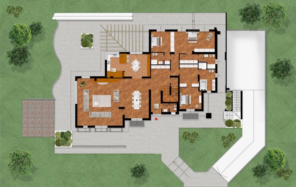 Immersa nella tranquillità e nel verde di un parco privato di 4.000 mq, proponiamo una villa esclusiva dalle dimensioni generose, articolata su due livelli fuori terra ed uno seminterrato, pensata per un vivere quotidiano di assoluto comfort.