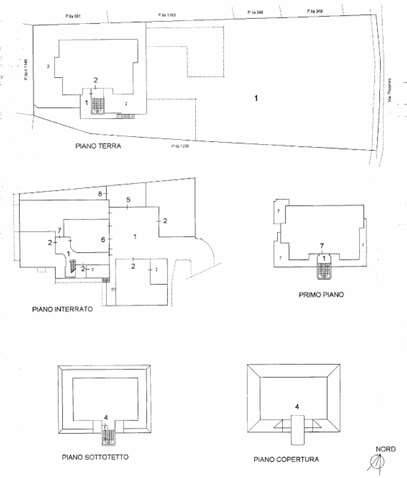L'appartamento è così composto: al piano interrato locali ad uso cantina ed autorimessa, oltre ad altri locali ad uso cantina e sgombero in corpo staccato; al piano terreno ingresso, cucina, locale pranzo, soggiorno, studio, due disimpegni dai quali si accede alla zona notte, distribuita in tre camere, due bagni ed un ripostiglio; al secondo piano, accessibile tramite scala comune, locale sottotetto al rustico, con lastrico solare soprastante. All’esterno dell'appartamento sono presenti porticati coperti. Inoltre, a compendio dell’immobile e ad uso comune i beni distinti al subalterno n. 1, consistenti nel locale caldaia, corte, spazi di manovra e vano scala. Fanno parte del lotto due terreni, di cui uno edificabile, oltre a terreni non edificabili a destinazione agricola e di metrature varie in zona Cascina Enea. Si precisa che l’accesso diretto ai fabbricati insistenti sul mappale 1234, dalla via pubblica, avviene mediante cancello carraio posto sul lato est della particella, prospiciente su Via Prosmini al civico 31.