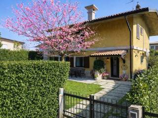 € 530.000Villa bifamiliare via cassio, 1, Rivoltella, Desenzano del GardaA pochi passi dal lago e dal centro di Colombare, proponiamo moderna villa centrale di nuova costruzione in classe energetica A4, con finiture di pregio e design minimal. Disposta su due livelli, la villa offre al piano terra una luminosa zona giorno con cucina a vista, bagno finestrato, lavanderia/ripostiglio e accesso al giardino tramite ampie vetrate e portico coperto. Al primo piano, due camere matrimoniali, ampio bagno e possibilità di terza camera, cabina armadi o secondo bagno, oltre a due terrazze vivibili. Completano la proprietà garage fuori terra collegato all’abitazione e posto a